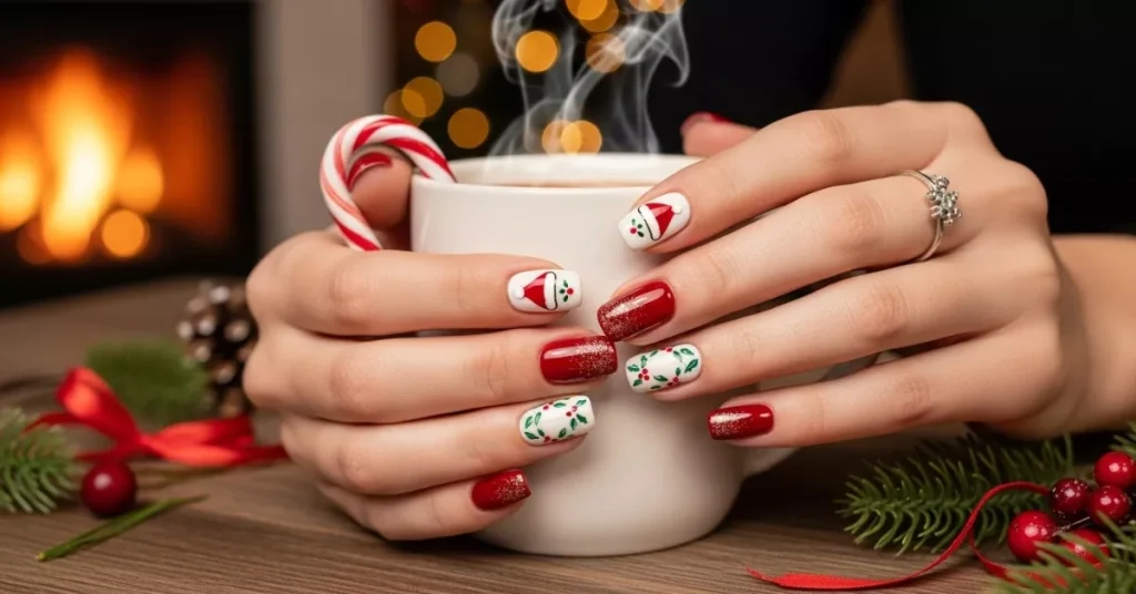 If you’re into classic reds, snowflake shimmer, or designs that look like mini gift wrap, there’s something special about decorating your nails for December.
