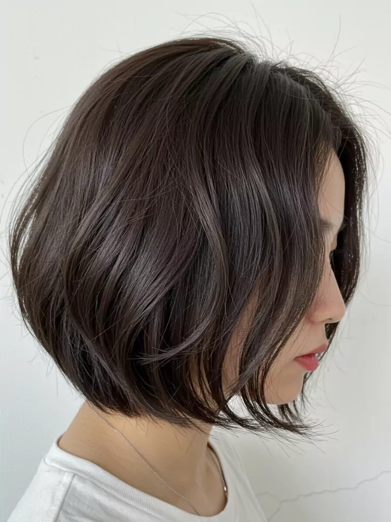 A chin-length or slightly longer bob with smooth ends or soft waves. Great for bright colors or highlights and works well for energetic concepts.