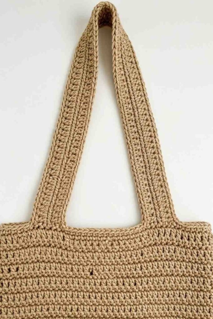 If you want thicker, sturdier straps, simply repeat this for 2–3 total rows. Once finished, attach the straps firmly by sewing or slip-stitching them to the inside of the bag, making sure both sides sit evenly so the bag hangs straight.