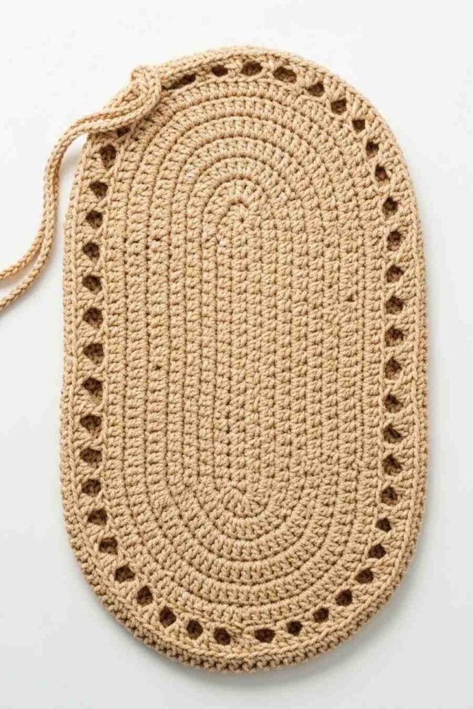 Every round, add increases at both ends of the base (usually the 3-stitch corner area). Continue until your base reaches your desired shape oval or rectangular.