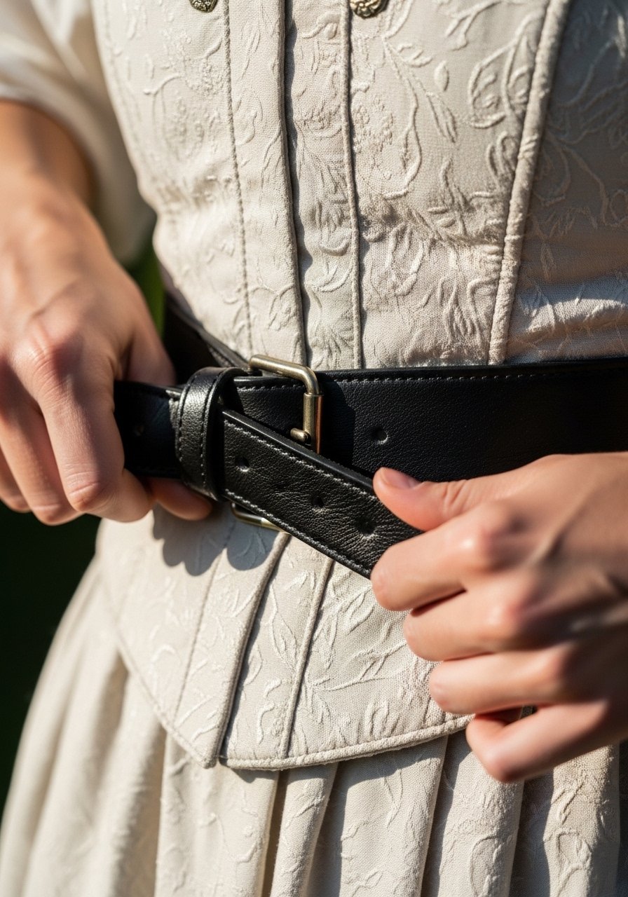 What visually changes: the skirt gains structure and the torso reads shorter, which balances long sleeves or full skirts. Many miss the right belt width—too thin disappears, too wide dominates. Avoid cinching so tight it creases the fabric; you want shape, not discomfort.