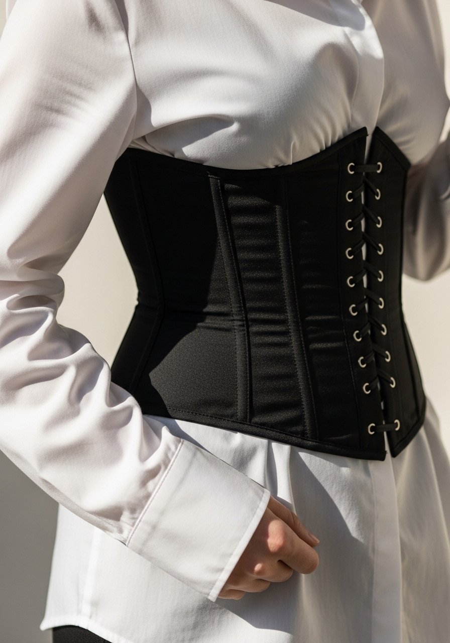 Mistake to avoid: going too tight with the corset if it sits over fabric. It should sit smoothly, not bunch the shirt.