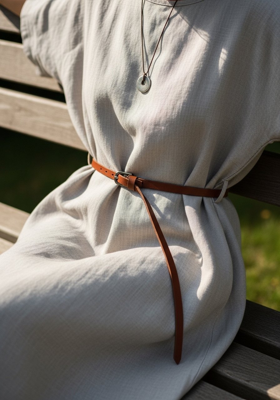 I love this because it feels like wearing breathable history. I wore it on long walk days—kept cool and moving. The shape is forgiving but looks intentional when belted.