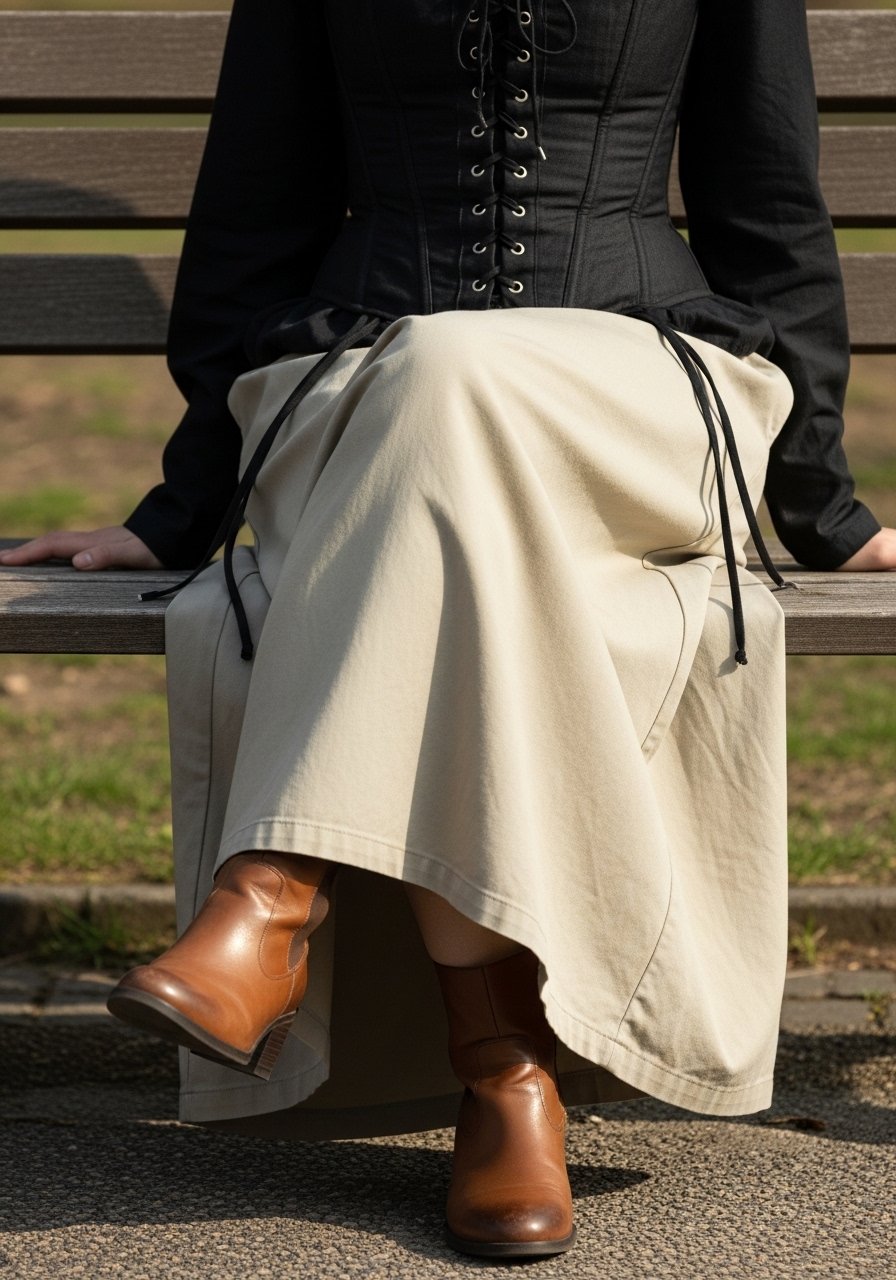 I wear corset tops as shaping layers, not equipment. Over a soft skirt they give structure without pain. I felt grounded and more upright walking around museums.
