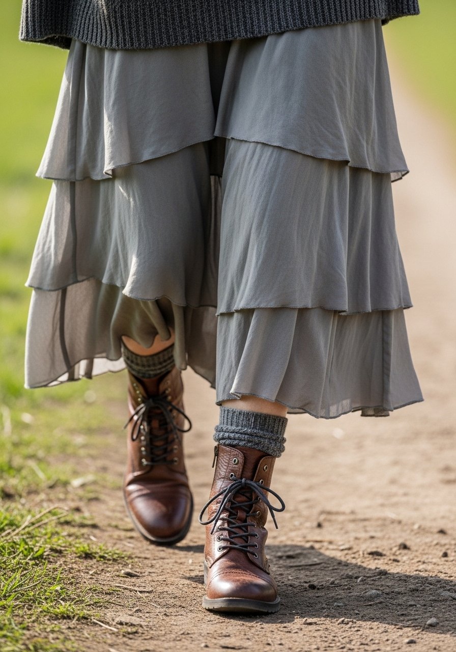 5. Layered Skirts with Lace-Up Boots