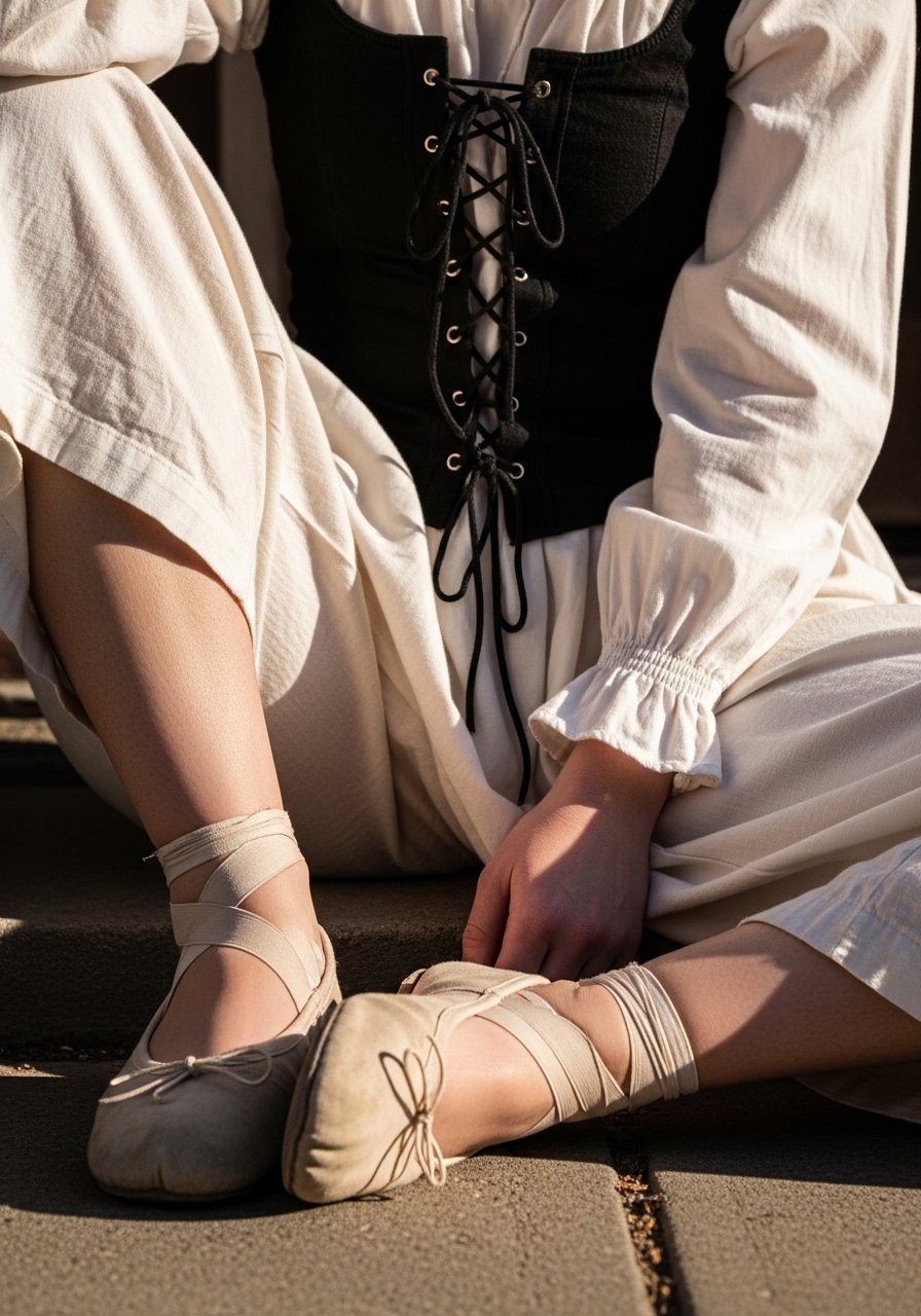 11. Layered Chemise and Lace-Up Bodice with Flat Shoes