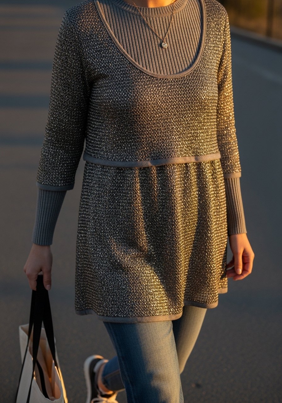 12. Faux Chainmail Tunic Over Knit Top and Jeans