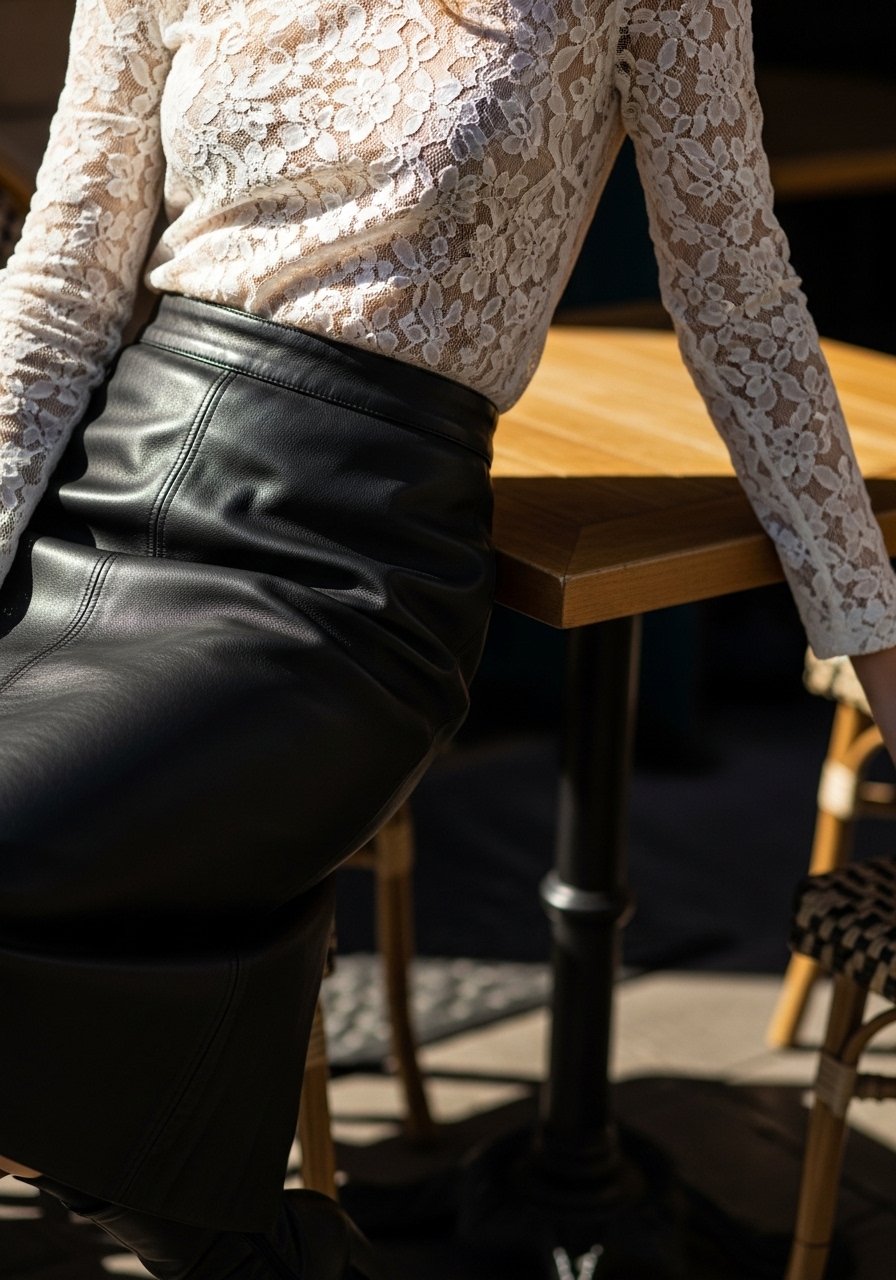 This is my dressier medieval hint. Lace sleeves feel old-world; the leather skirt keeps it modern and street-friendly. I wore it to a dinner and felt composed.