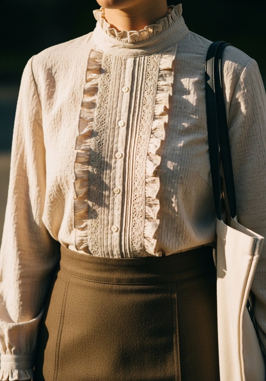 What changed: I once picked a blouse with large ruffles that overwhelmed my face; now I favor small, close ruffles.