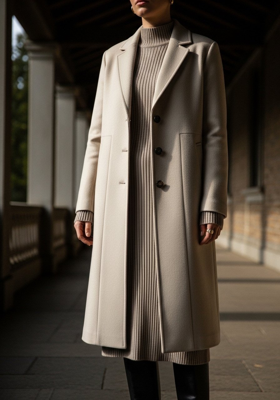 23. Minimalist Surcoat over Knit Dress