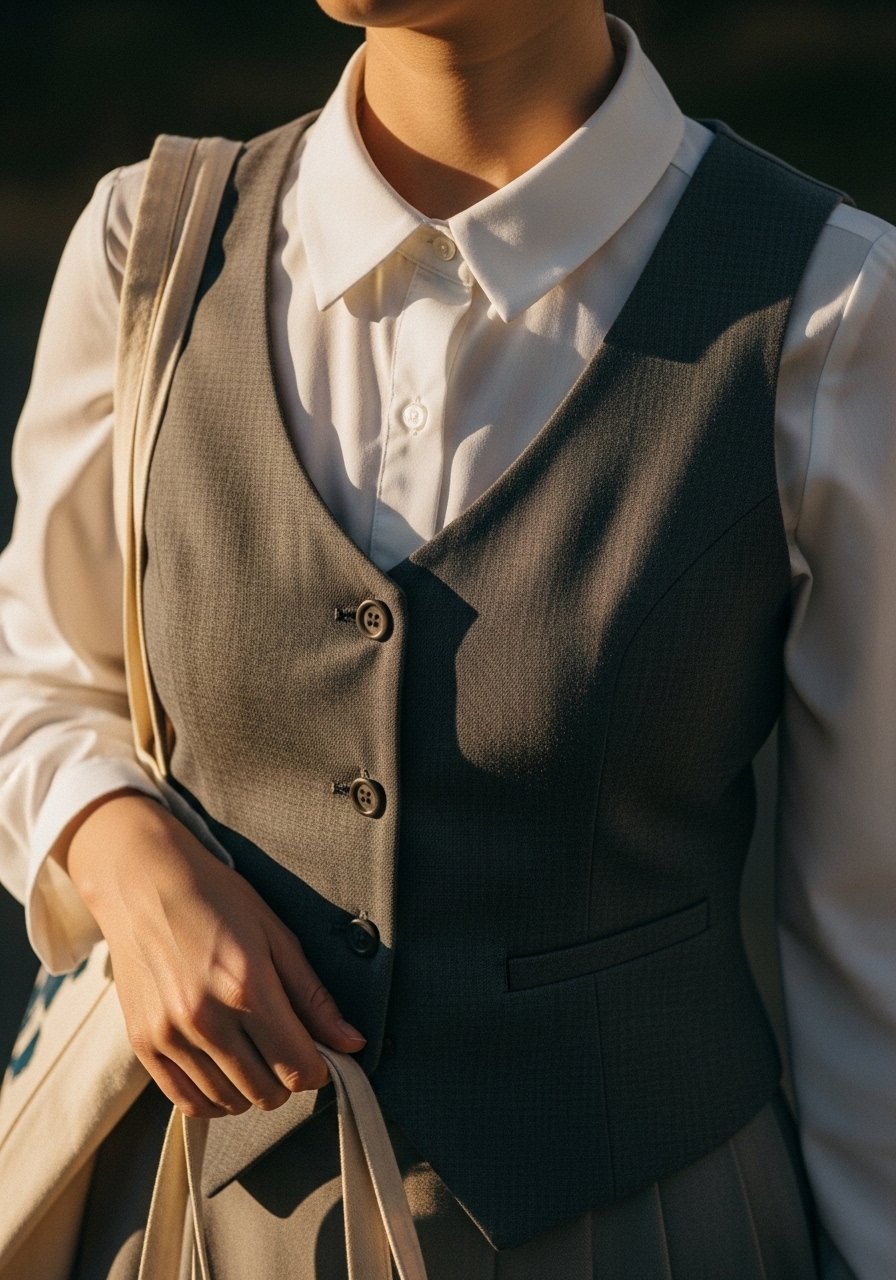 What changed: I used to button the vest fully; leaving the top button open softens the face.
