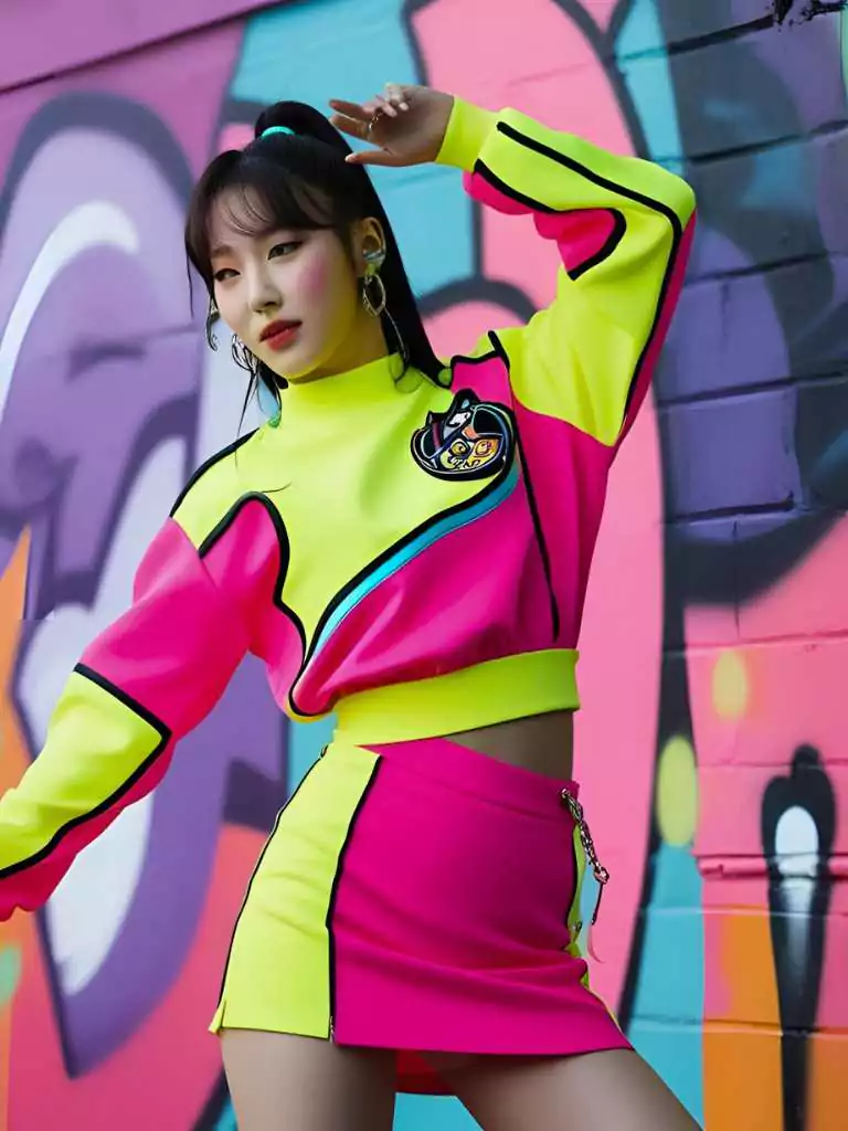 This outfit gives strong K-pop fan vibes and looks great in photos.