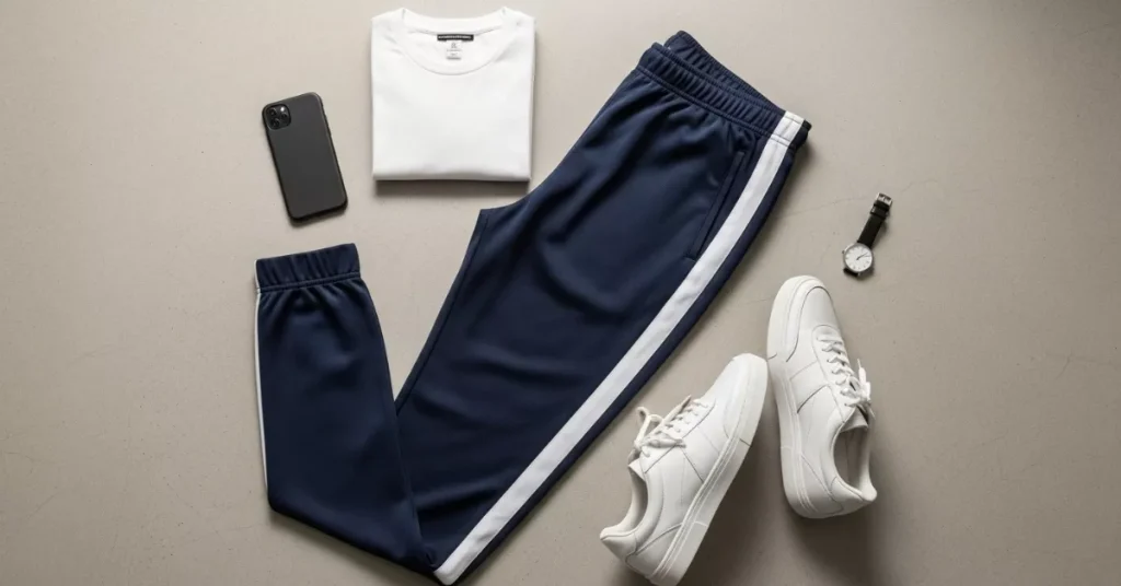 Minimalist track pants make it easy to look calm, confident, and put-together without spending a fortune.